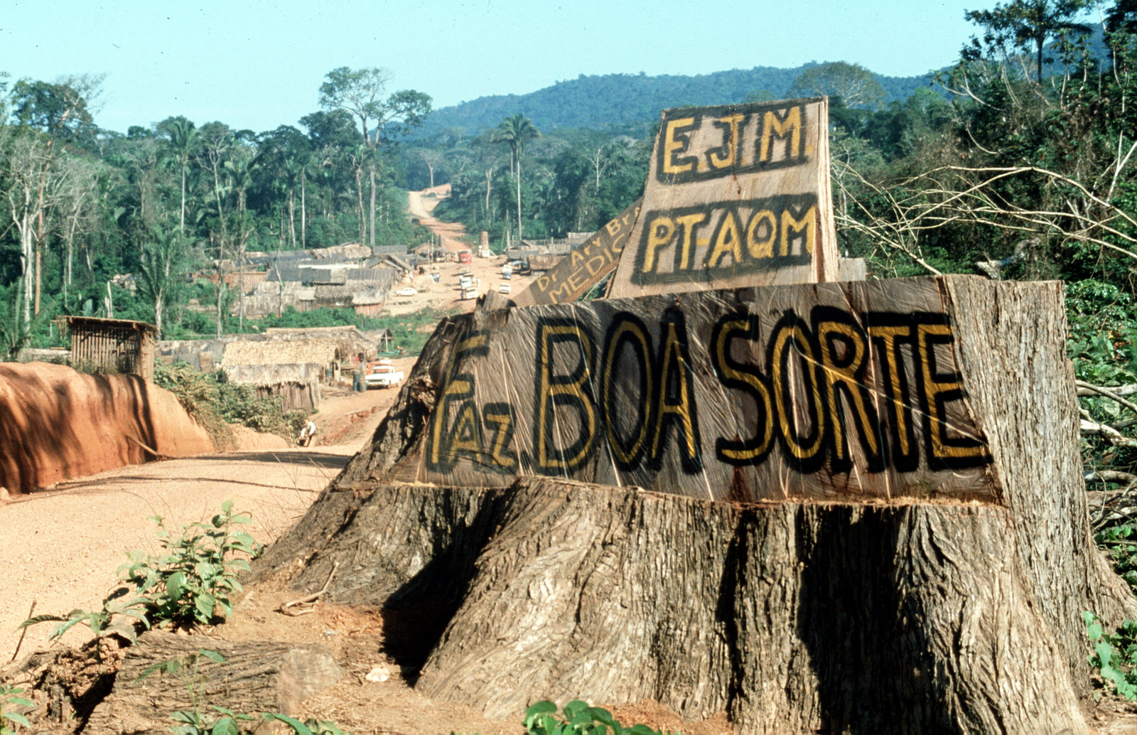 Amazônia, foto de 1981. Nove anos depois da Conferência de Estocolmo, seis anos depois da música de Paulinho da Viola, quando o “milagre econômico” da ditadura já tinha afundado, o que restou de um naco de floresta. Se vendia como progresso e desenvolvimento.